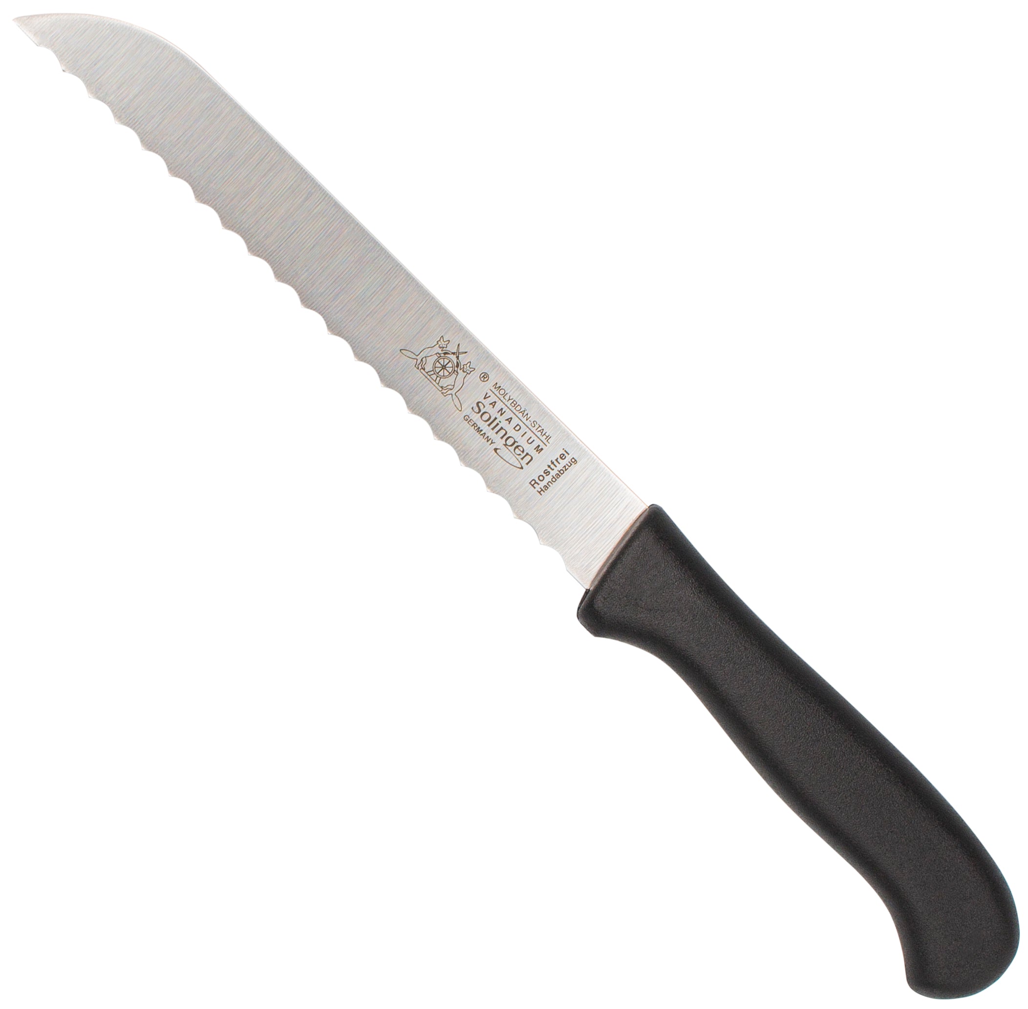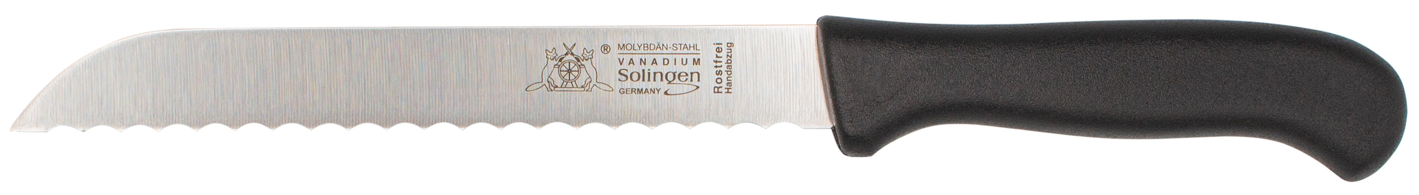 Unser hochwertiges Brotmesser darf in keiner Küche fehlen. Das Brotmesser wird eingesetzt, um präzise gleichmäßige Scheiben schneiden zu können. Dank dem Wellenschliff der Klinge, können auch harte Krusten ganz leicht geschnitten werden, während die weiche, empfindliche Krume ohne Schäden sauber durchtrennt wird. Somit sind die Brotmesser auch für größere Brotlaibe bestens geeignet. Brotmesser sind nicht nur für Brot geeignet, sondern auch für das Zerschneiden eines Krustenbratens oder größere Lebensmittel mit harter Schale wie beispielsweise Melonen.